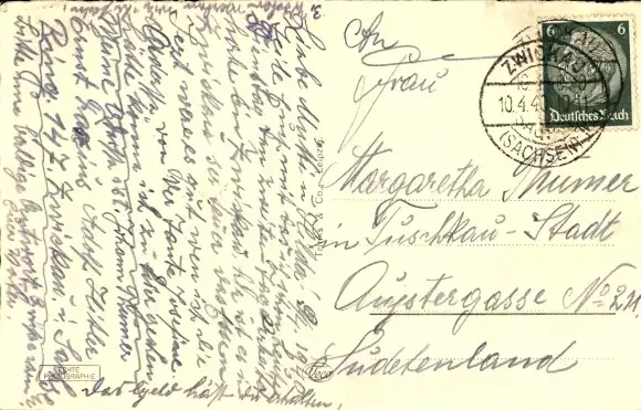 Zustand, siehe Scan, gelaufen 1940 - ca 14 cm X 9 cm