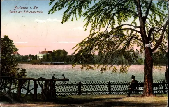 Ak Zwickau Sachsen, am Schwanenteich, Ruderboot