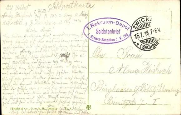 Zustand, siehe Scan, gelaufen, 1916 - ca 14 cm X 9 cm