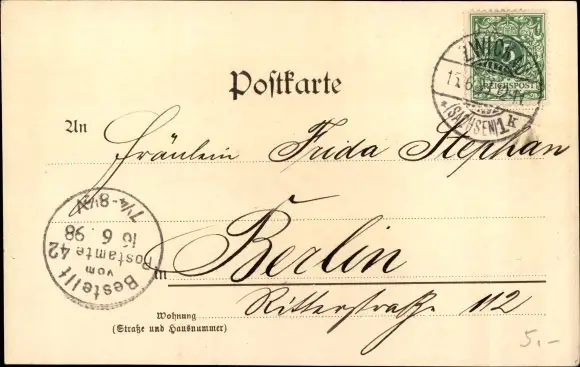 Zustand, siehe Scan, gelaufen, 1898 - ca 14 cm X 9 cm