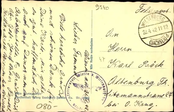 Zustand, siehe Scan, gelaufen, 1942 - ca 14 cm X 9 cm
