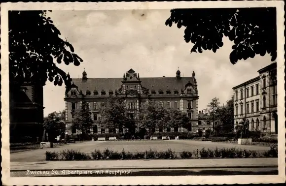 Ak Zwickau in Sachsen, Albertplatz, Hauptpost, Außenansicht
