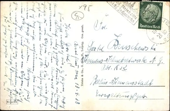 Zustand, siehe Scan, gelaufen, 1938 - ca 14 cm X 9 cm