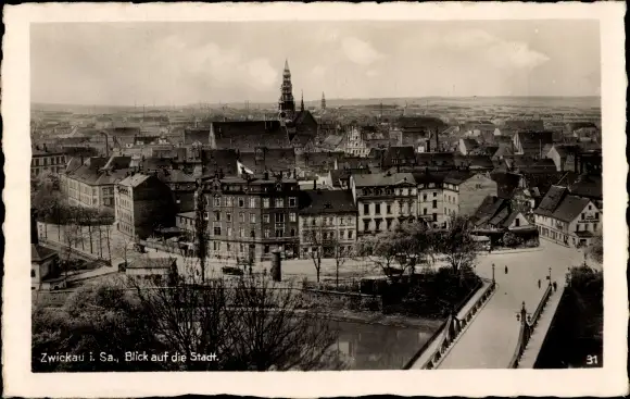 Ak Zwickau in Sachsen, Blick auf die Stadt, Brücke