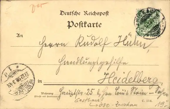 Zustand, siehe Scan, gelaufen, 1898 - ca 14 cm X 9 cm