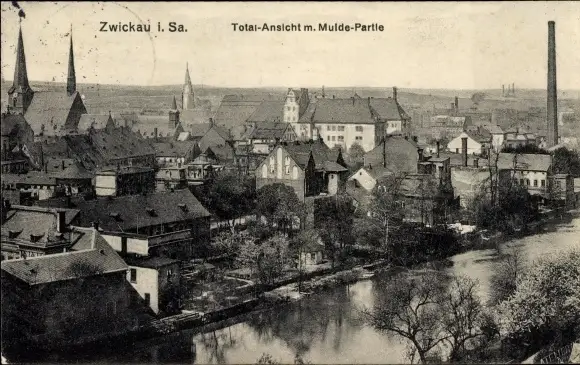 Ak Zwickau in Sachsen, Gesamtansicht, Mulde-Partie