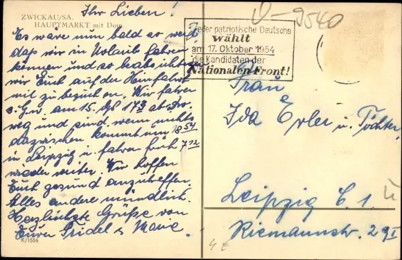 Zustand, siehe Scan, gelaufen, 1954 - ca 14 cm X 9 cm