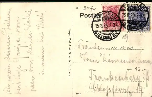 Zustand, siehe Scan, gelaufen, 1920 - ca 14 cm X 9 cm