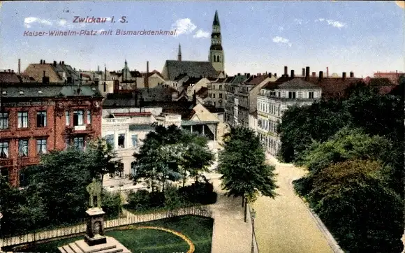 Ak Zwickau in Sachsen, Kaiser-Wilhelm-Platz, Bismarckdenkmal