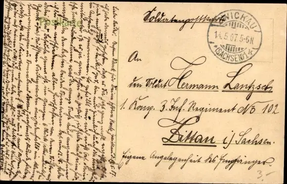 Zustand, siehe Scan, gelaufen, 1907 - ca 9 cm X 14 cm