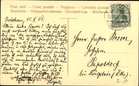 Zustand, siehe Scan, gelaufen, 1905 - ca 9 cm X 14 cm