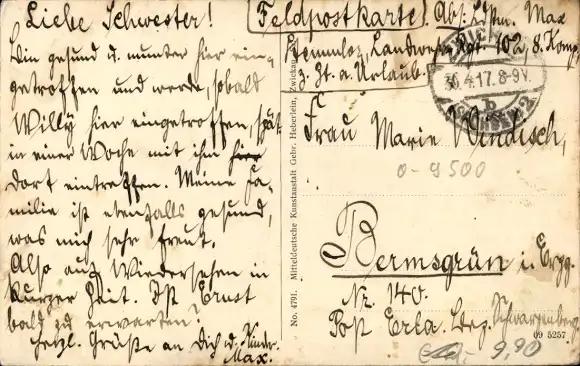 Zustand, siehe Scan, gelaufen, 1917 - ca 14 cm X 9 cm