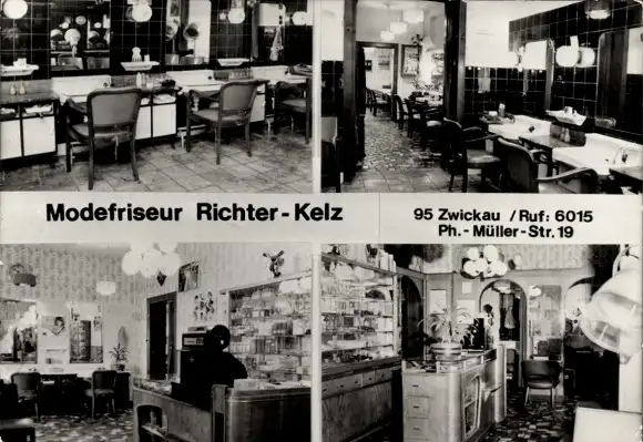 Ak Zwickau in Sachsen, Modefriseur Richter Kelz, Ph.-Müller-Str. 19, Innenansichten