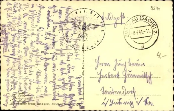 Zustand, siehe Scan, gelaufen, 1941 - ca 14 cm X 9 cm