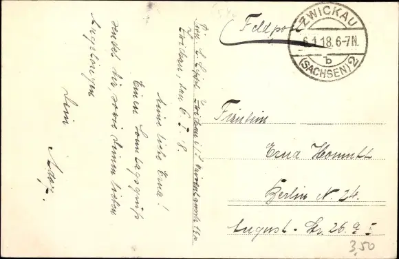 Zustand, siehe Scan, gelaufen, 1918 - ca 14 cm X 9 cm