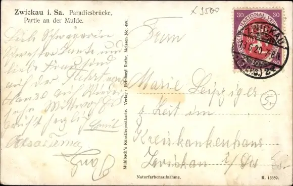 Ak Zwickau in Sachsen, Paradiesbrücke, Partie an der Mulde