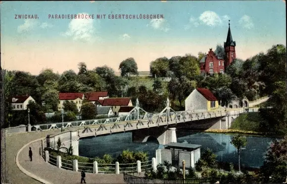 Ak Zwickau in Sachsen, Paradiesbrücke mit Ebertschlösschen