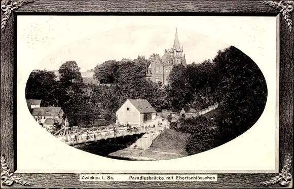 Ak Zwickau in Sachsen, Paradiesbrücke mit Ebertschlösschen