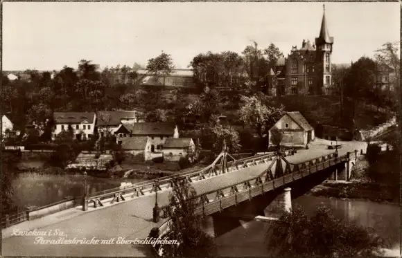Ak Zwickau in Sachsen, Paradiesbrücke mit Ebertschlösschen
