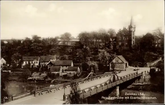 Ak Zwickau in Sachsen, Paradiesbrücke mit Ebertschlösschen