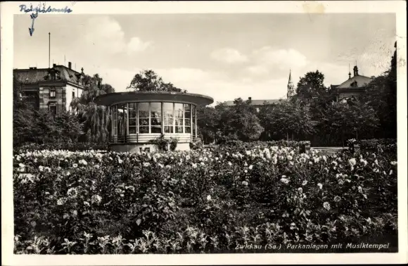 Ak Zwickau in Sachsen, Parkanlagen mit Musiktempel