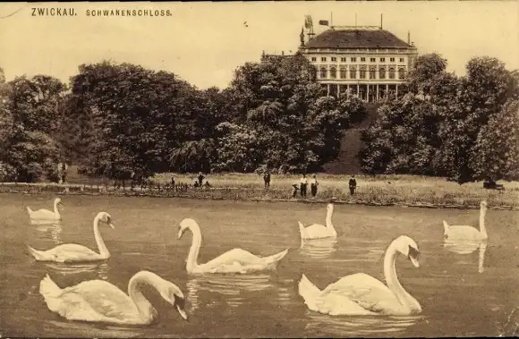 Ak Zwickau in Sachsen, Partie am Schwanenschloss