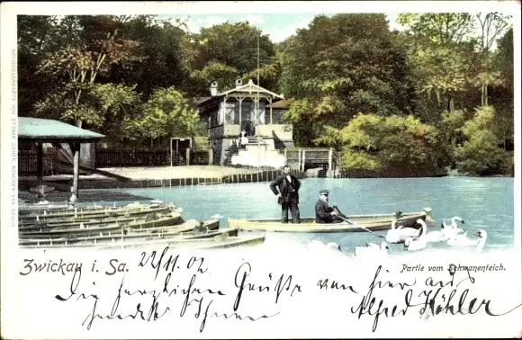Ak Zwickau in Sachsen, Partie vom Schwanenteich