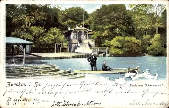 Ak Zwickau in Sachsen, Partie vom Schwanenteich