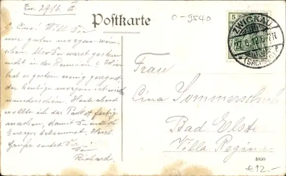 Zustand, siehe Scan, gelaufen, 1912 - ca 14 cm X 9 cm