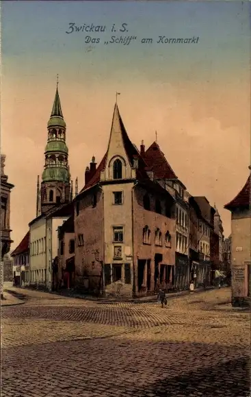 Ak Zwickau in Sachsen, Schiff am Kornmarkt, Marienkirche