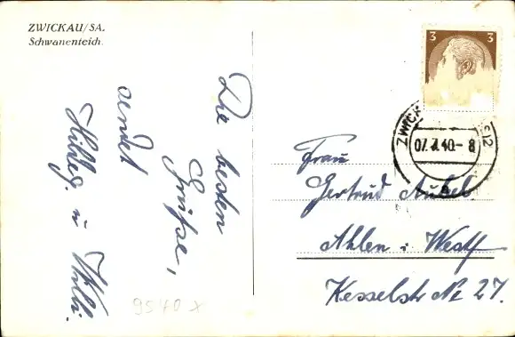 Zustand siehe Scan, 1940, gelaufen - ca 14 cm X 9 cm
