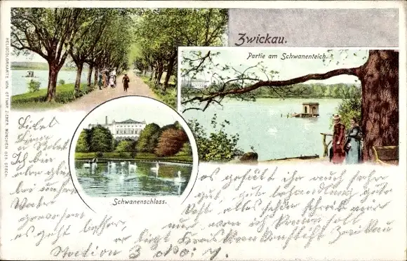 Ak Zwickau in Sachsen, Schwanenteich, Schwanenschloss