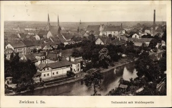Ak Zwickau in Sachsen, Teilansicht mit Muldenpartie