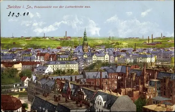 Ak Zwickau in Sachsen, Totalansicht, Blick von der Lutherkirche