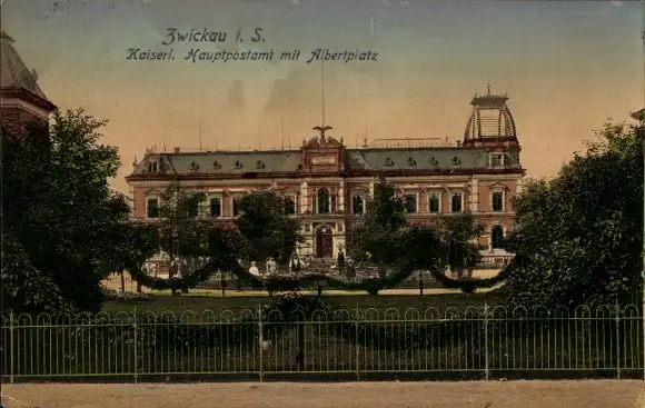 Ak Zwickau in Sachsen, kaiserliches Hauptpostamt, Albertplatz