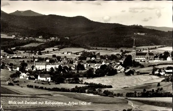 Ak Zwiesel Niederbayern, Panorama mit Rabenstein und Arber