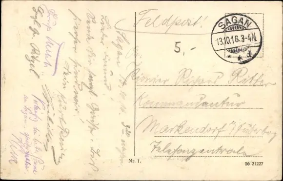 Zustand, siehe Scan, gelaufen, 1916 - ca 14 cm X 9 cm