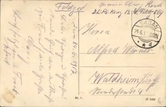 Zustand, siehe Scan, gelaufen, 1917 - ca 14 cm X 9 cm