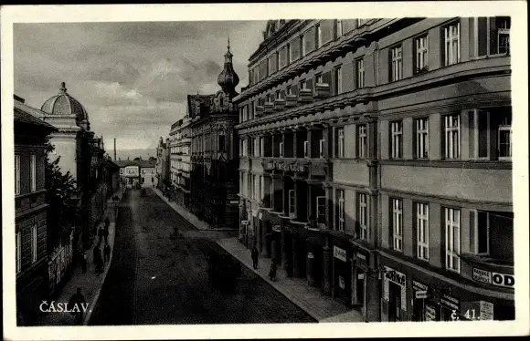 Ak Čáslav Tschaslau Mittelböhmen, Straßenpartie im Ort
