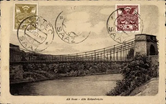 Ak Žatec Saaz Region Aussig, Alte Kettenbrücke