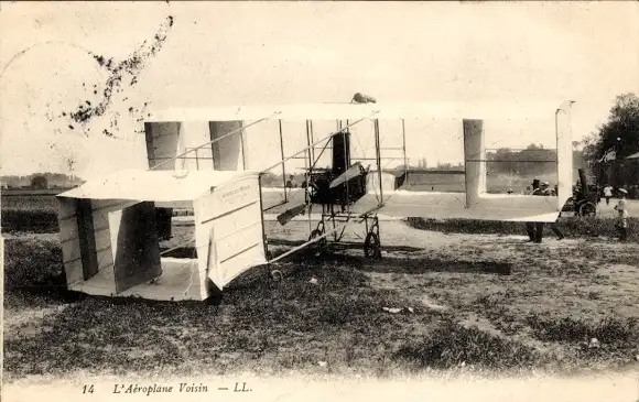 Ak das Voisin-Flugzeug, Doppeldecker, Zuschauer