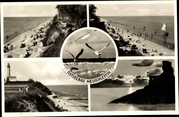 Ak Śliwin Neuschleffin Rewal Rewahl Pommern, Strandansichten, Leuchtturm, Möwen