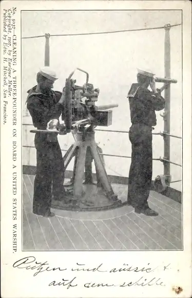Ak reinigt eine Dreipfünder-Kanone an Bord eines US-Kriegsschiffs