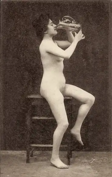 Ak sitzender Frauenakt, aus einer Glaskanne trinkend