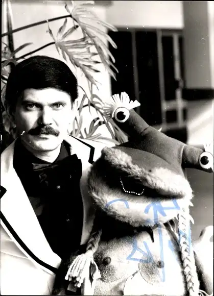 Ak unbekannte Persönlichkeit, Portrait, Autogramm, Handpuppe