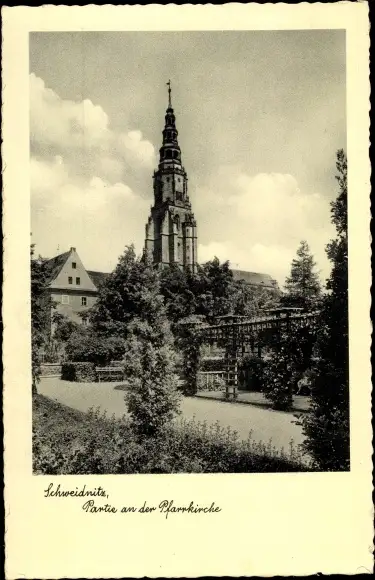 Ak Świdnica Schweidnitz Schlesien, Partie an der Pfarrkirche