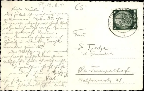 Zustand, siehe Scan, gelaufen, 1941 - ca 14 cm X 9 cm