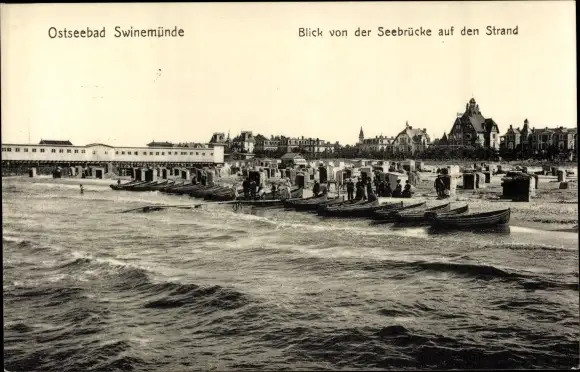Ak Świnoujście Swinemünde Pommern, Blick von der Seebrücke, Strand