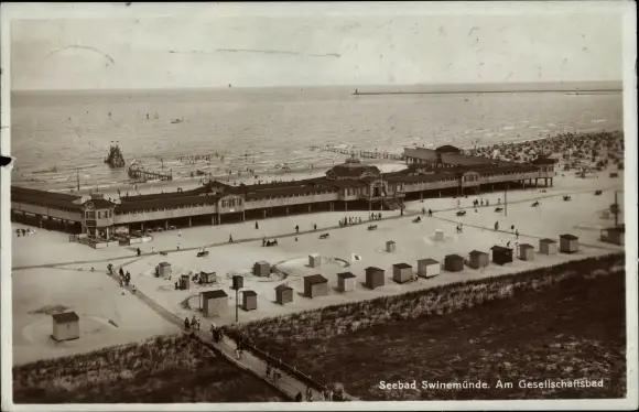 Ak Świnoujście Swinemünde Pommern, Gesellschaftsbad, Strand