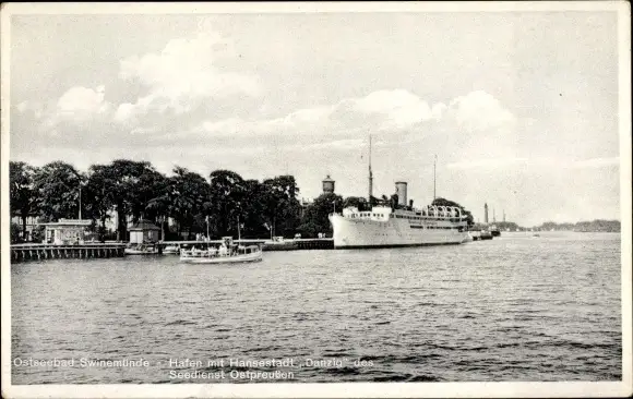 Ak Świnoujście Swinemünde Pommern, Hafen mit Hansestadt Danzig des Seedienst Ostpreußen